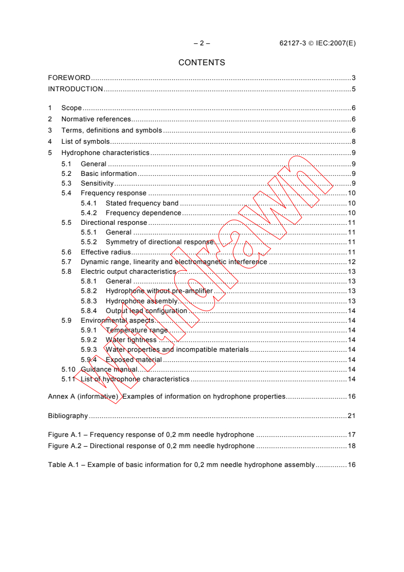 IEC 62127-3:2007 is an international standard that defines the properties of hydrophones for ultrasonic fields up to 40 MHz. It applies to miniature hydrophones that use piezoelectric sensor elements, intended for measurements made in water, and to hydrophones with or without an associated pre‑amplifier. IEC 62127-3 is part of the IEC 62127 series and is published alongside Parts 1 and 2 to replace several older IEC hydrophone standards.