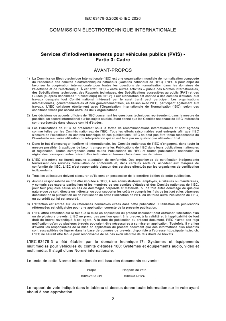 IEC 63479-3:2026 - Services d'infodivertissements pour véhicules publics (PVIS) - Partie 3: Cadre Released:12. 01. 2026 Isbn:9782832709863