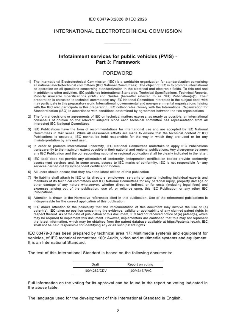 IEC 63479-3:2026 - Infotainment services for public vehicles (PVIS) - Part 3: Framework Released:12. 01. 2026 Isbn:9782832709863
