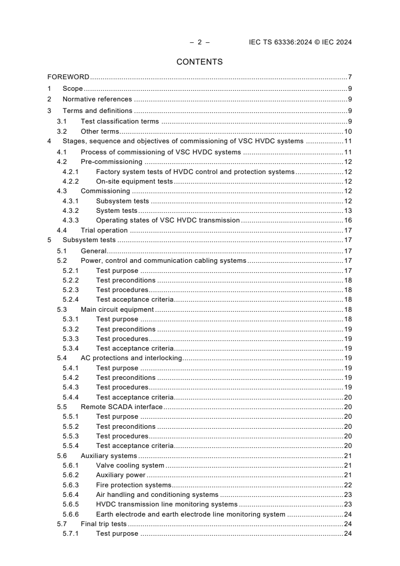 Keywords: IEC TS 63336:2024, VSC HVDC commissioning, HVDC systems, commissioning tests, converter station, HVDC transmission line.
