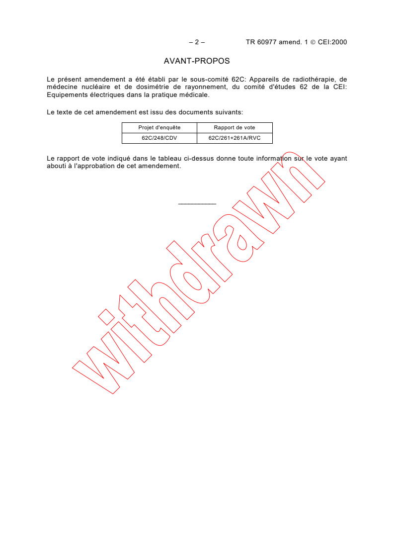 Le présent amendement a été établi par le sous-comité 62C: Appareils de radiothérapie, de
