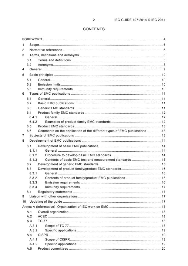GUIDE 107:2014 describes procedures for the drafting of IEC publications that relate wholly or partly to electromagnetic compatibility (EMC). They are applied when preparing new electromagnetic compatibility publications or EMC clauses, as well as when revising existing publications. These procedures are followed in order to ensure that the resulting publications are consistent with each other and current practice, and to avoid overlapping document scopes.