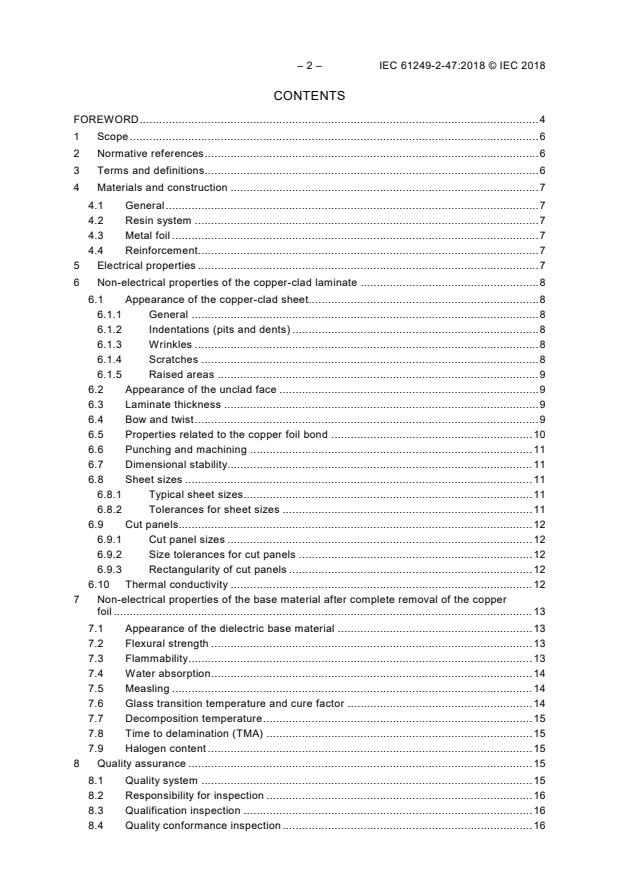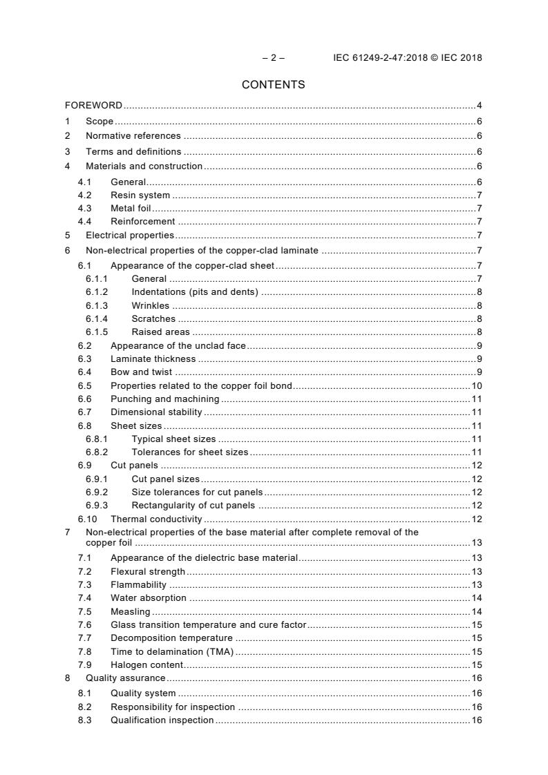 IEC 61249-2-47:2018 covers both material composition and measurable properties, including: