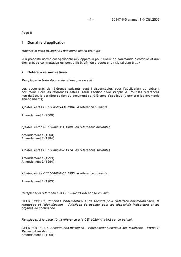 Remplacer à la page 10, la référence à la CEI 60947-1:1996 par ce qui suit: