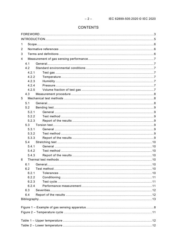 IEC 62899-505:2020(E) specifies mechanical and thermal test methods for the determination of the reliability characteristics of a printed flexible gas sensor, which is operated at relatively low temperature and is composed of a flexible substrate, electrode, and gas sensing layer. The examples of target gas include in-door air pollutants, combustion gas from a fire situation, and industrial flue gas.
