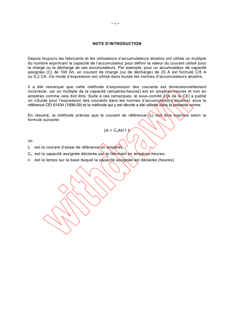 et déchargé dans les conditions spécifiées en 4.2.1 à un courant constant de 0,2 I A.