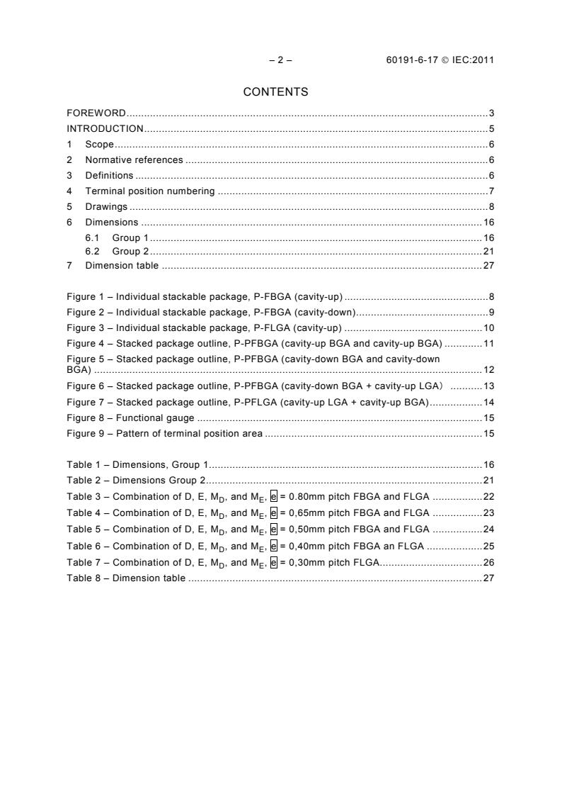 IEC 60191-6-17:2011 provides outline drawings and dimensions for stacked packages and individual stackable packages in the form of FBGA or FLGA.