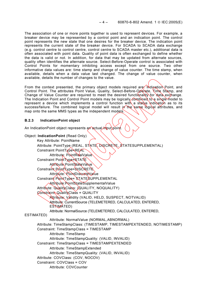 - Supplemental object models (Annex B): Provides additional, control‑centre specific object models (e.g., IndicationPoint and ControlPoint logical combinations) to represent points, devices and associated metadata.