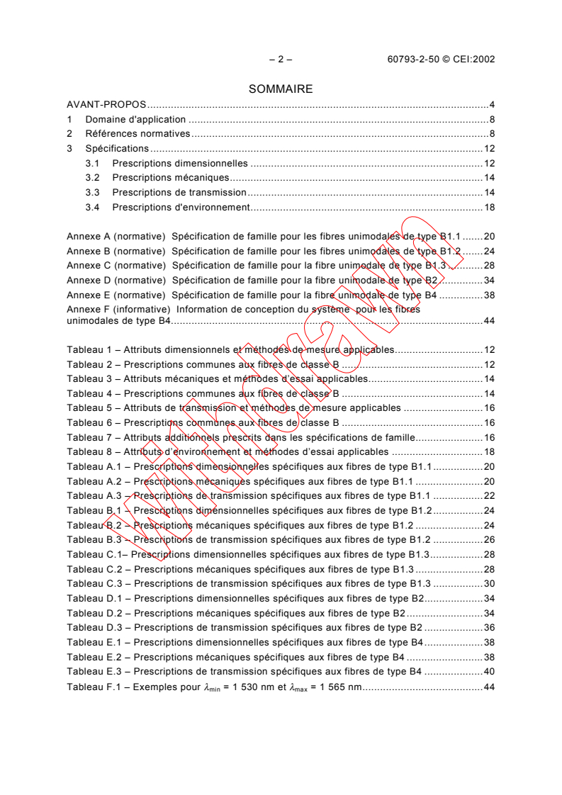 Keywords: IEC 60793-2-50, class B single-mode fibres, optical fibre standards, fibre specifications, single-mode fibre types B1.1 B1.2 B1.3 B2 B4, optical fibre transmission, dimensional requirements, mechanical properties, environmental testing, optical telecommunications, fibre optic quality assurance.