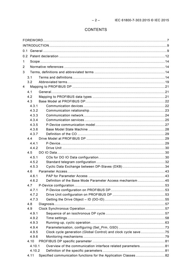 Keywords: IEC 61800-7-303, adjustable speed electrical power drives, PROFIdrive profile, PROFIBUS DP, PROFINET IO, network technologies, parameter access, diagnosis ASE, alarm ASE, power drive communication, industrial automation standards, drive system interoperability, clock synchronous operation.