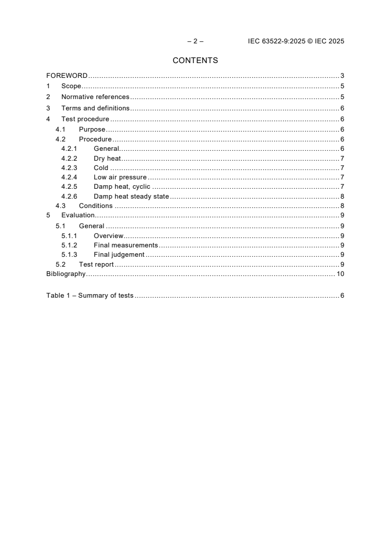 - IEC 60068 series: Comprehensive environmental testing standards including cold, dry heat, low air pressure, and damp heat tests often referenced in IEC 63522-9.