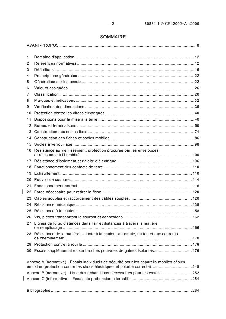 La CEI 60884-1 comprend les parties suivantes, sous le titre général Prises de courant pour