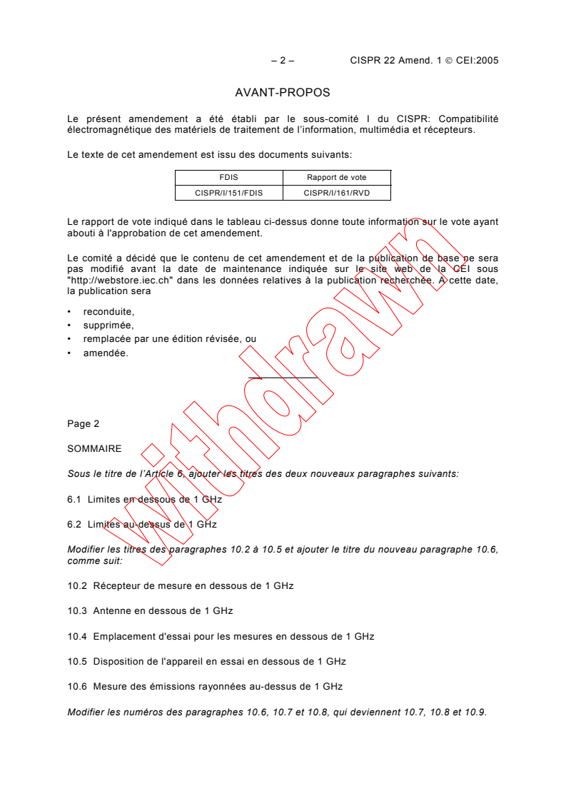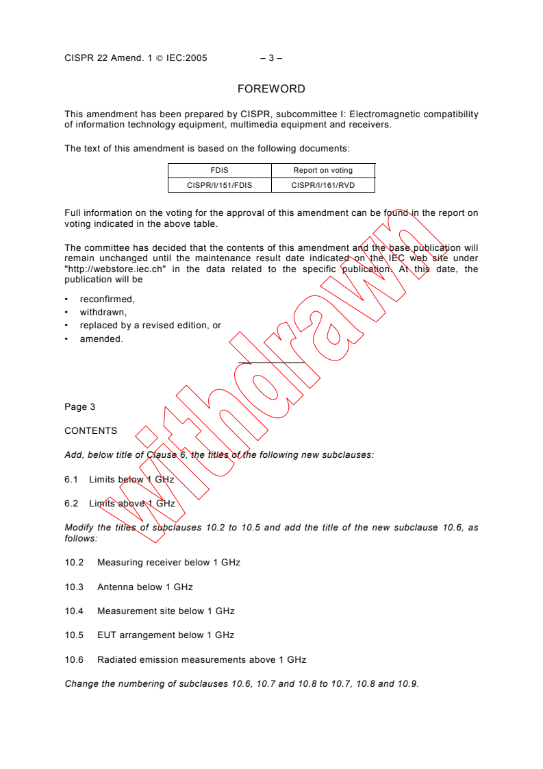 – 2 – CISPR 22 Amend. 1 CEI:2005