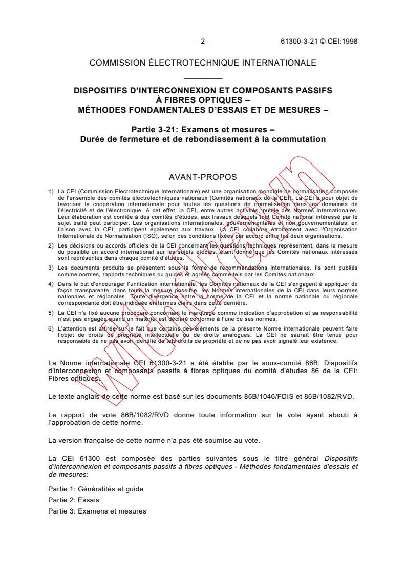La Norme internationale CEI 61300-3-21 a été établie par le sous-comité 86B: Dispositifs