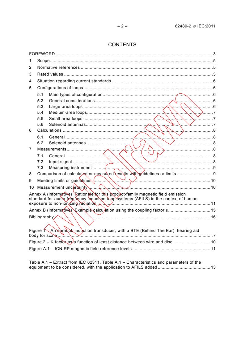 IEC 62489-2:2011 is an international standard developed by the International Electrotechnical Commission (IEC) that focuses on audio-frequency induction loop systems (AFILS) used for assisted hearing. This part 2 of IEC 62489 targets the methods for calculating and measuring low-frequency magnetic field emissions from induction loops to assess compliance with established human exposure guidelines.