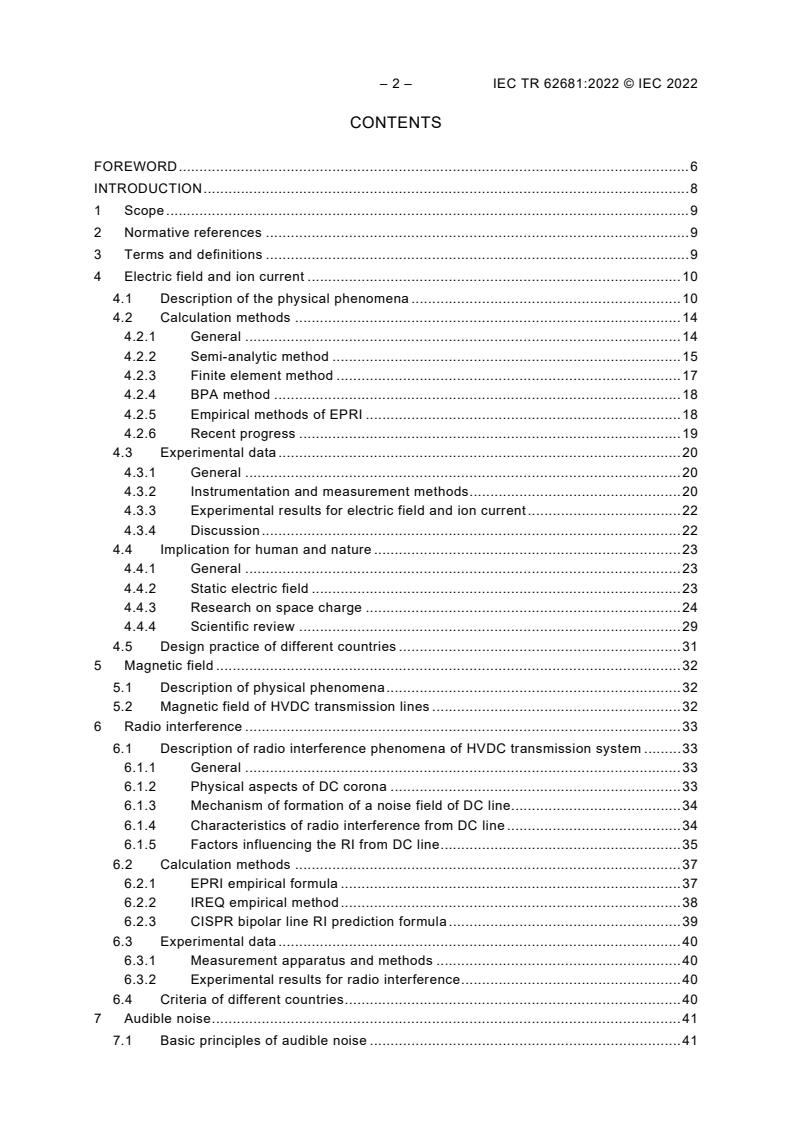 Keywords: IEC TR 62681:2022, HVDC, electromagnetic performance, electric field, ion current, magnetic field, radio interference, audible noise, overhead transmission lines.