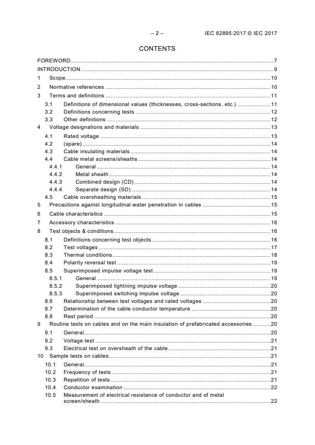 IEC 62895:2017 specifies test methods and requirements for transmission power cable systems, cables with extruded insulation and their accessories for fixed land installations, for rated voltages up to and including 320 kV. Within the scope of this standard “extruded insulation” means insulation manufactured by extrusion of either thermoplastic (e.g. polyethylene) or crosslinked (e.g. crosslinked polyethylene, ethylene propylene rubber, etc.) material. The insulation material may be either unfilled or filled (e.g. with mineral or carbon). The requirements apply to single-core cables in combination with their accessories, outdoor and terminations for gas insulated systems, joints, and asymmetric joints for usual conditions of installation and operation, but not to special cables and their accessories, such as submarine cables, for which modifications to the standard tests may be necessary or special test conditions may need to be devised.