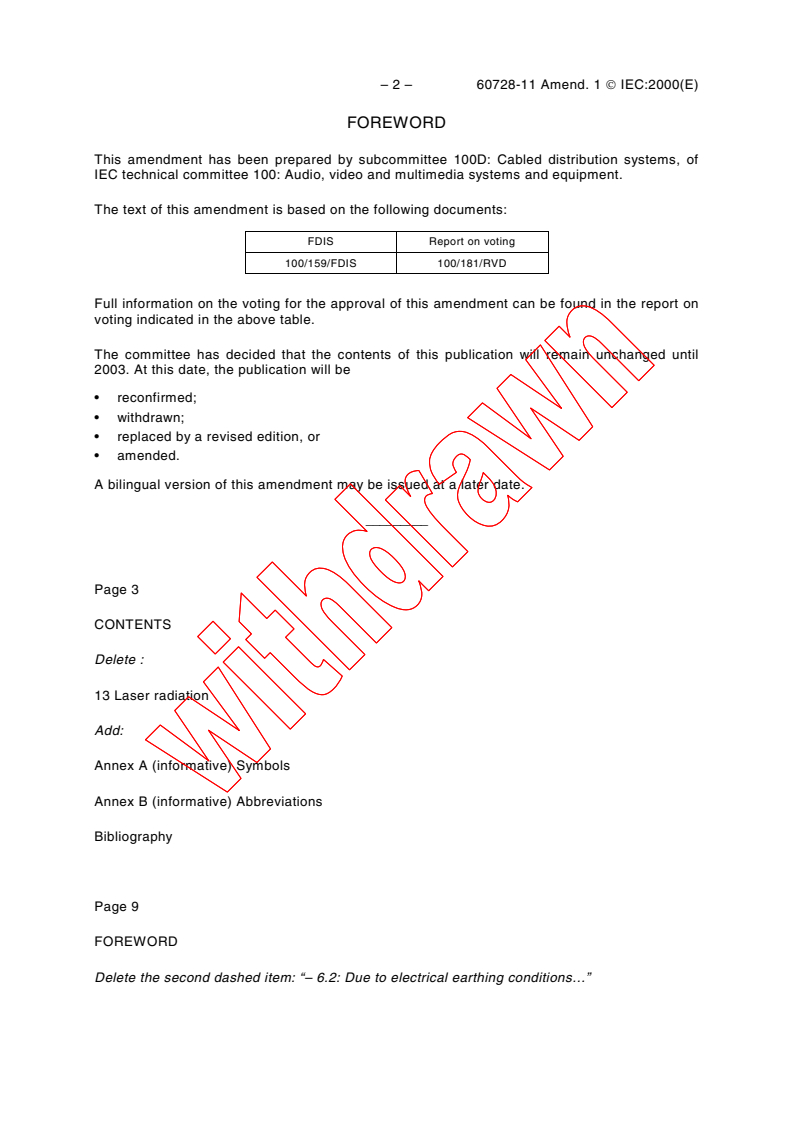 This amendment has been prepared by subcommittee 100D: Cabled distribution systems, of