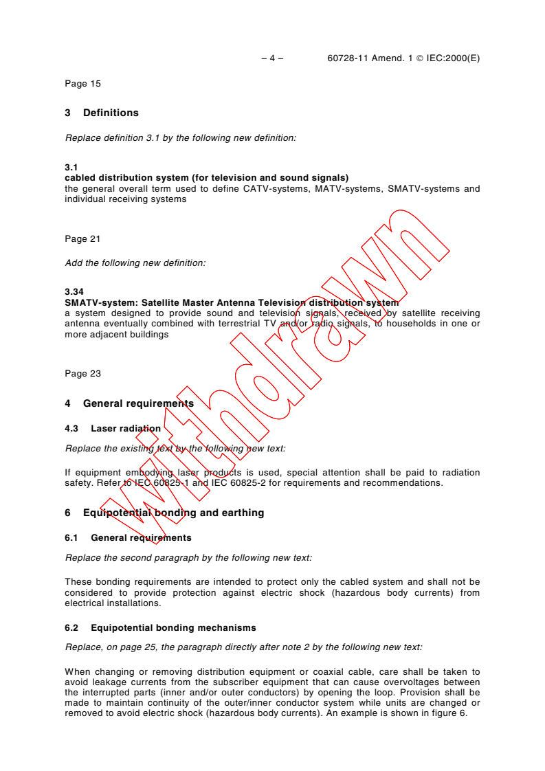 - Scope and definitions: Clarifies that cabled distribution systems include CATV, MATV, SMATV and individual receiving systems; adds SMATV definition.