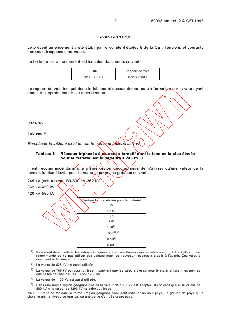Le présent amendement a été établi par le comité d’études 8 de la CEI: Tensions et courants