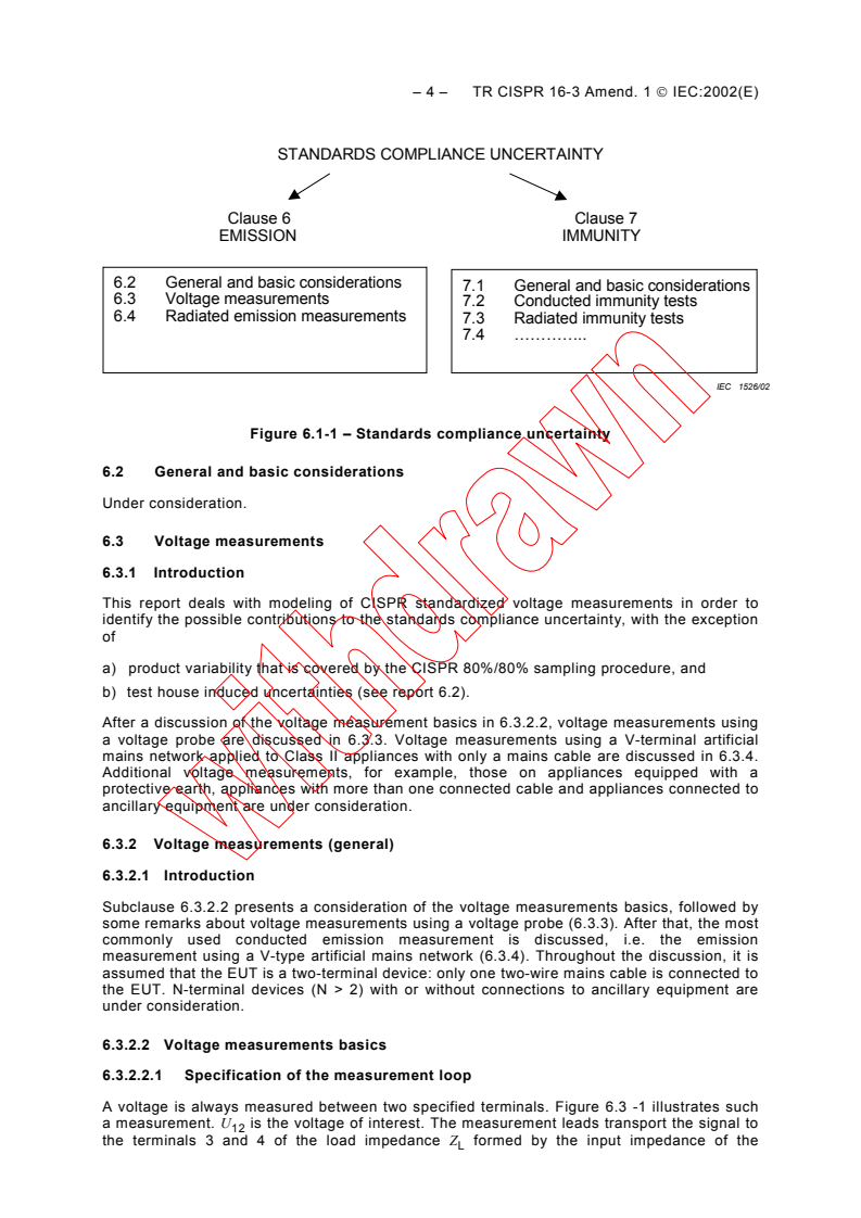 CISPR TR 16-3:2000/AMD1:2002 is a technical report published by the International Electrotechnical Commission (IEC). Its full title is "Amendment 1 - Specification for radio disturbance and immunity measuring apparatus and methods - Part 3: Reports and recommendations of CISPR". This standard covers: Contains a new clause 6: Reports on uncertainties in standardized emission compliance testing. Gives guidance to those who are involved in the development or modification of CISPR emission standards and gives useful background information for those who apply the standards in practice.