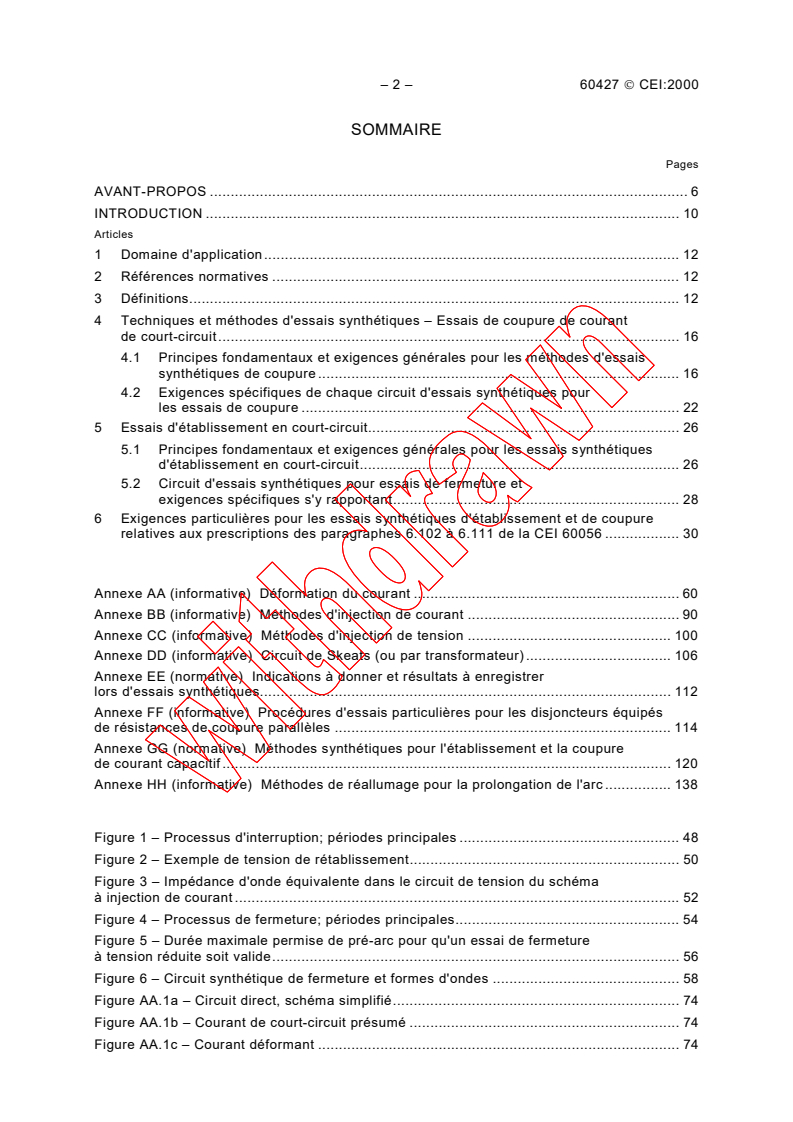 IEC 60427:2000 is a standard published by the International Electrotechnical Commission (IEC). Its full title is "Synthetic testing of high-voltage alternating current circuit-breakers". This standard covers: Applies to a.c. circuit-breakers within the scope of IEC 60056 (Clause 1). It provides the general rules for testing a.c. circuit-breakers, for making and breaking capacities over the range of test-duties described in Subclauses 6.102 to 6.111 of IEC 60056, by synthetic methods. The purpose of this standard is to establish criteria for synthetic testing and for the proper evaluation of results. Such criteria will establish the validity of the test method without imposing restraints on innovation of test circuitry.