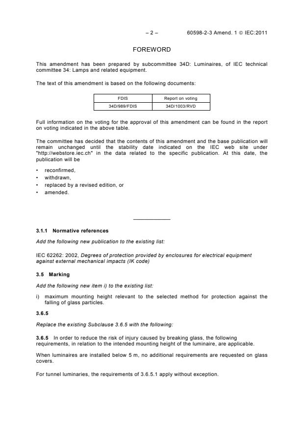 60598-2-3 Amend. 1 IEC:2011 – 3 –