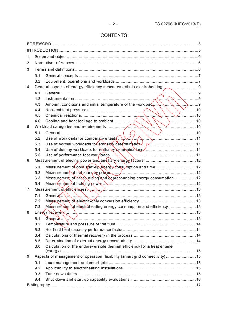 IEC TS 62796:2013 is a technical specification published by the International Electrotechnical Commission (IEC). Its full title is "Energy efficiency in electroheating installations". This standard covers: IEC/TS 62693:2013(E) is applicable to industrial electroheating installations using electric energy as input, alone or in combination with other kinds of energy. However, external combustible fuel energy input is not dealt with, and all considerations begin at the electric only mains frequency source to which the installation is connected. Any external voltage transformation from the supply network to the plant into a special voltage which is fed into the installation is not dealt with in this Technical Specification, since it is not considered a responsibility of the manufacturer of the installation.