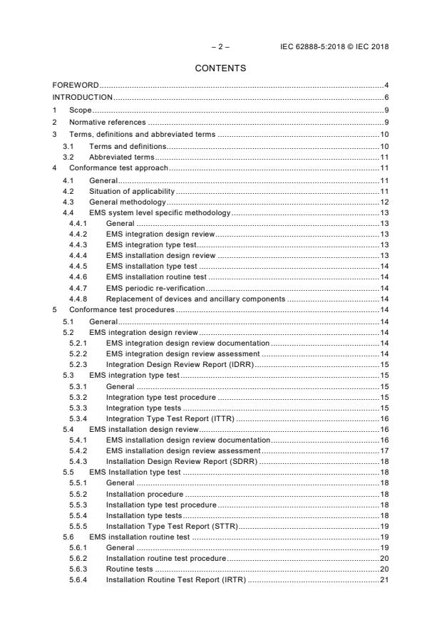 IEC 62888-5:2018 is a standard published by the International Electrotechnical Commission (IEC). Its full title is "Railway applications - Energy measurement on board trains - Part 5: Conformance test". This standard covers: IEC 62888-5:2018 specifies the conformance test arrangements for newly manufactured EMS (Energy management system) installed on a traction unit. This includes the integration conformance test and installation conformance test. In addition, this document also specifies the conformance test procedures for device and ancillary component replacement (e.g. due to damage in service), and periodic check to verify the EMS conformance test remains valid.