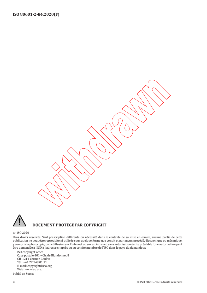 [1]) L'ISO 80601-2-79 et l'ISO 80601-2-80 remplacent l'ISO 10651-6, qui a été retirée.