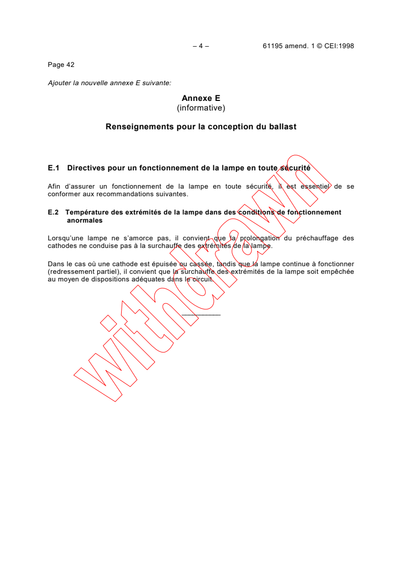 Amendement 1 - Lampes à fluorescence à deux culots - Prescriptions de sécurité
