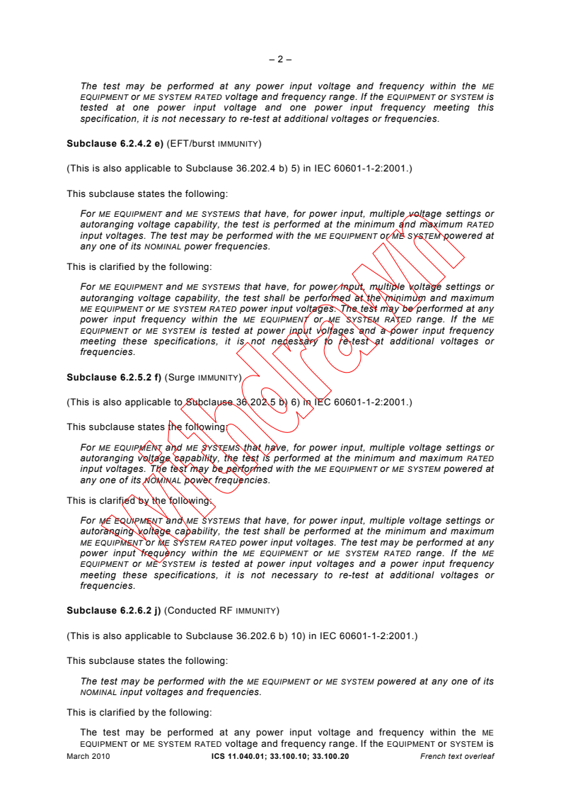 (This is also applicable to Subclause 36.202.6 b) 10) in IEC 60601-1-2:2001.)