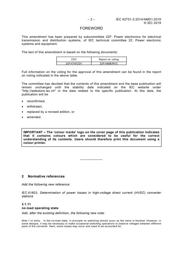 Amendment 1 - Power losses in voltage sourced converter (VSC) valves for high-voltage direct current (HVDC) systems - Part 2: Modular multilevel converters