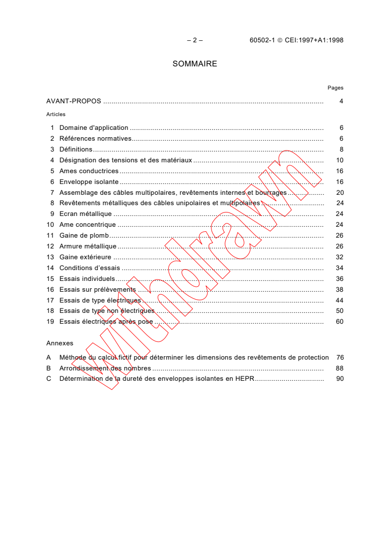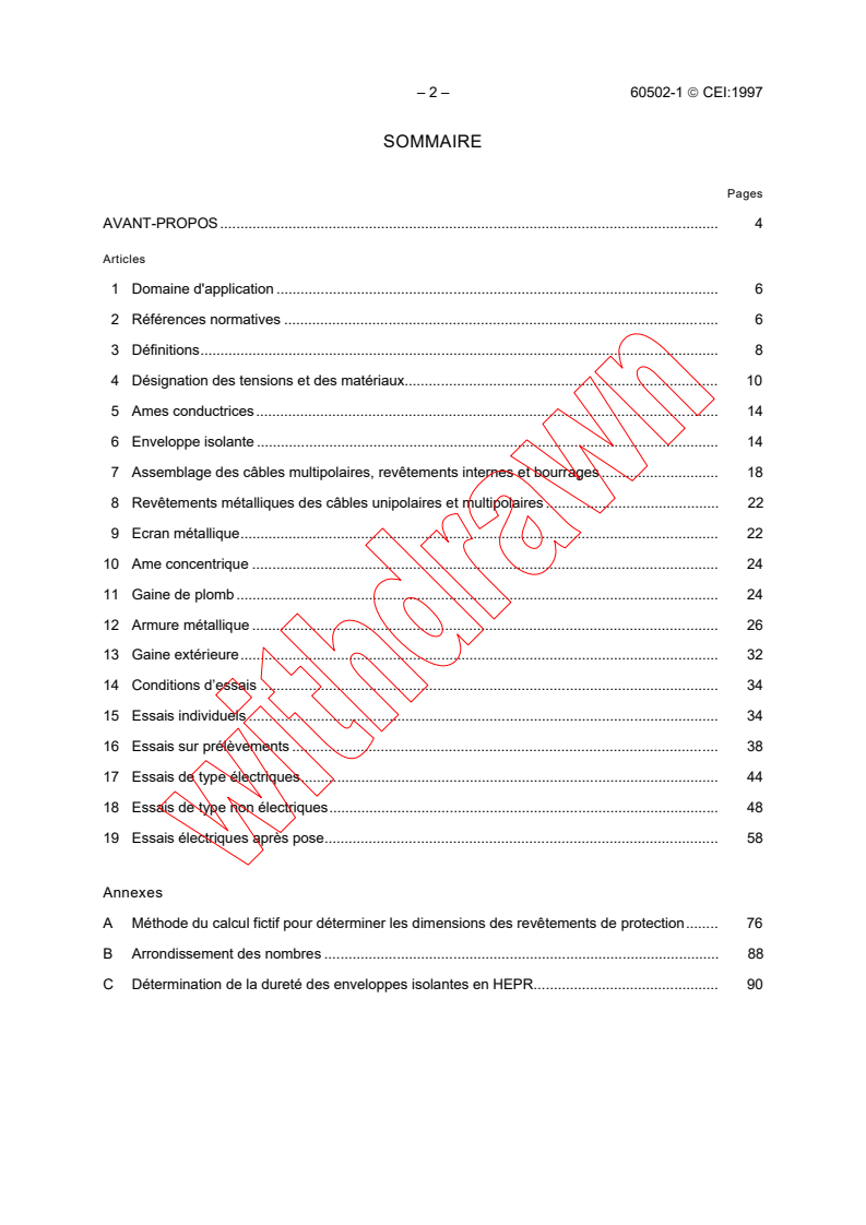 Câbles d'énergie à isolant extrudé et leurs accessoires pour des tensions assignées de 1 kV (Um = 1,2 kV) à 30 kV (Um = 36 kV) - Partie 1: Câbles de tensions assignées de 1 kV (Um = 1,2 kV) et 3 kV (Um = 3,6 kV)