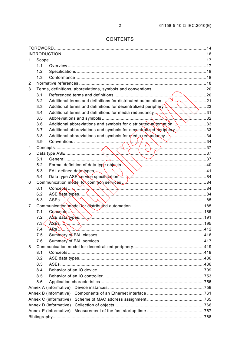 - Extensive normative content: terms, definitions, state machines, ASE services, and annexes (device instances, MAC addressing, fast startup measurement)