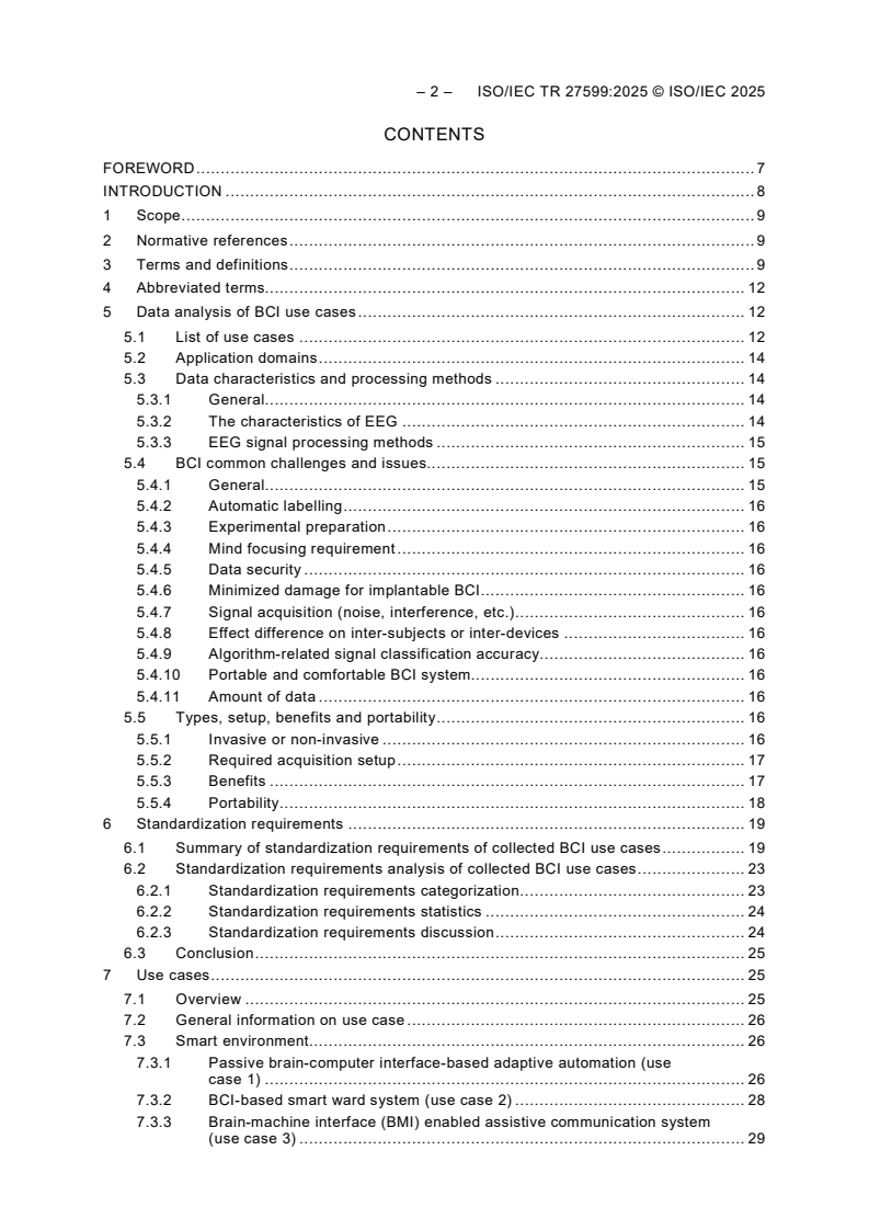 ISO/IEC TR 27599:2025 provides a collection of representative use cases of brain-computer interface (BCI) applications in a variety of domains: proposed medical and health, industrial controls, smart environment, etc.