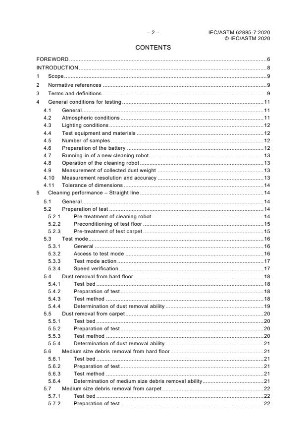 IEC/ASTM 62885-7:2020 is a standard published by the International Electrotechnical Commission (IEC). Its full title is "Surface cleaning appliances - Part 7: Dry-cleaning robots for household or similar use - Methods for measuring the performance". This standard covers: IEC/ASTM 62885-7:2020 is applicable to dry-cleaning robots for household use or under conditions similar to those in households. The purpose of this document is to specify the essential performance characteristics of dry- cleaning robots that are of interest to users and to describe methods for measuring these characteristics. This document is neither concerned with safety requirements nor with performance requirements. This first edition of IEC/ASTM 62885-7 cancels and replaces IEC 62929:2014. This edition constitutes a technical revision. This edition includes the following significant technical changes with respect to IEC 62929:2014: a) the box test has been cancelled; b) the set of straight-line tests have been extended to contain also tests on removal of different kinds of debris both from hard floors and carpets; c) the set of straight-line tests also contains a test on the removal of fibres from carpets; d) as a miscellaneous test, a method for the determination of energy consumption has been added; e) a separate clause on test material and equipment has been added.