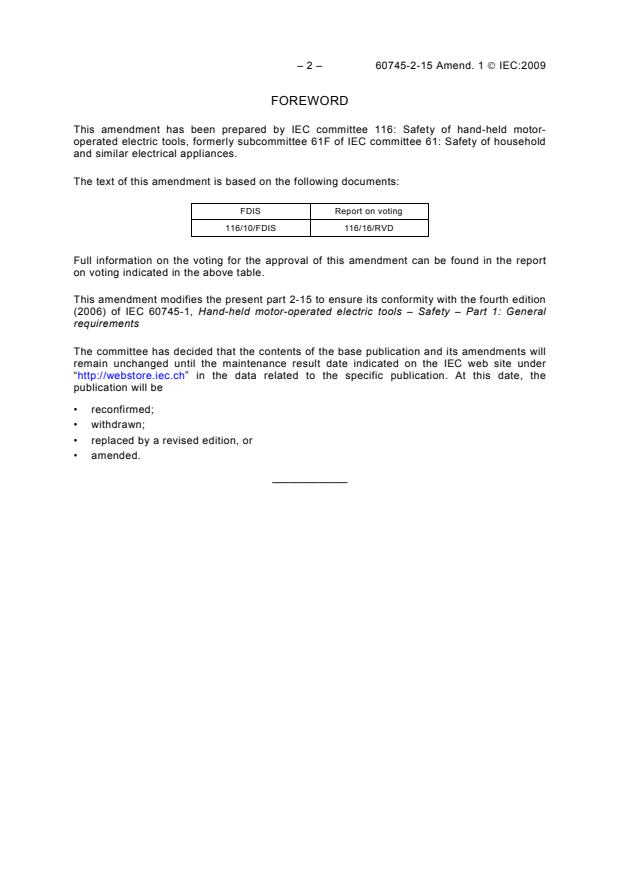 (Amendment)Amendment 1 - Hand-held motor-operated electric tools - Safety - Part 2-15: Particular requirements for hedge trimmers