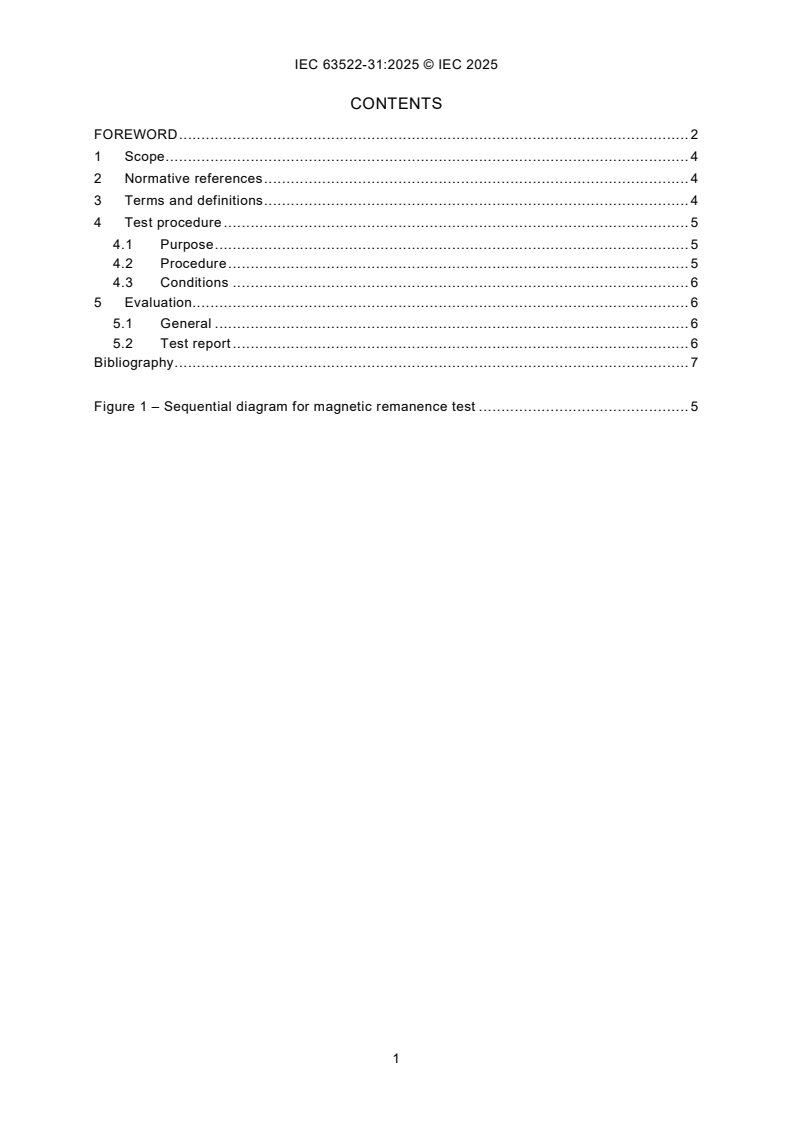 IEC 63522-31:2025 is an international standard published by the International Electrotechnical Commission (IEC) that defines a standardized test method for evaluating the magnetic remanence in electrical relays with DC coils. Magnetic remanence refers to the residual magnetic effect remaining in a relay’s magnetic circuit after energization, potentially affecting relay performance. This part of IEC 63522 focuses on ensuring that relays maintain reliable operation under conditions encountered during transportation, storage, and normal use.
