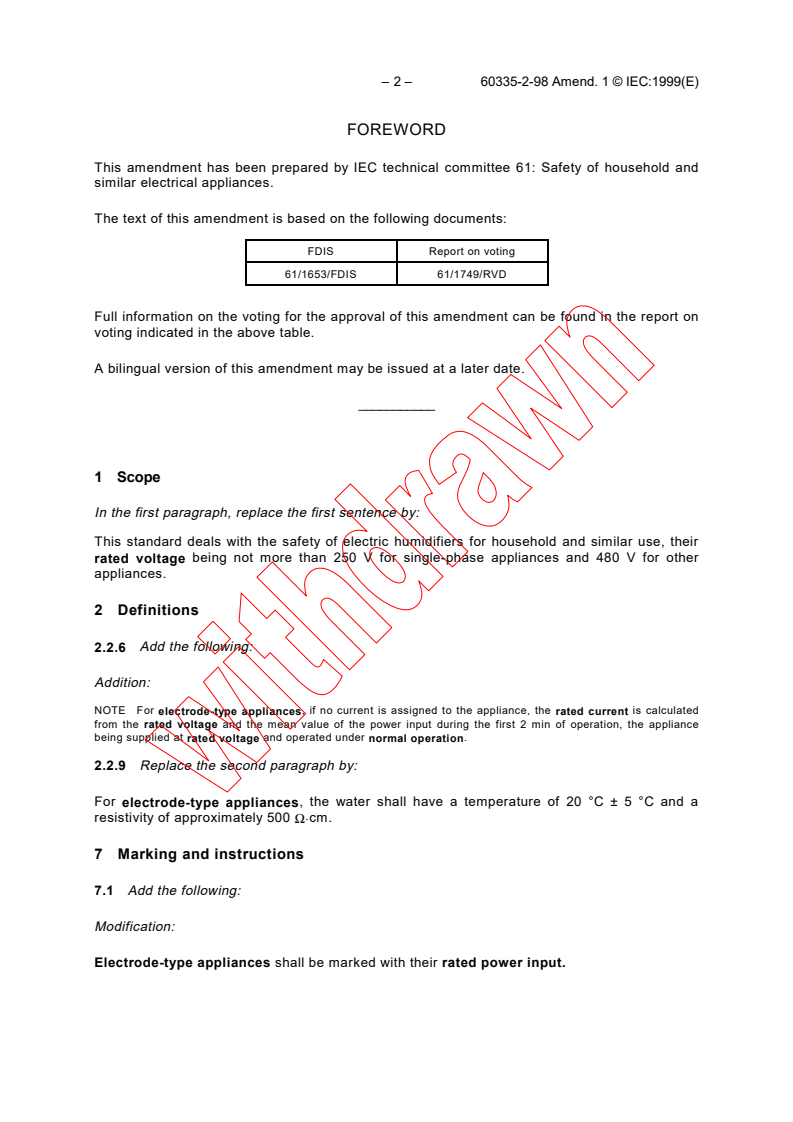 – 2 – 60335-2-98 Amend. 1 © IEC:1999(E)