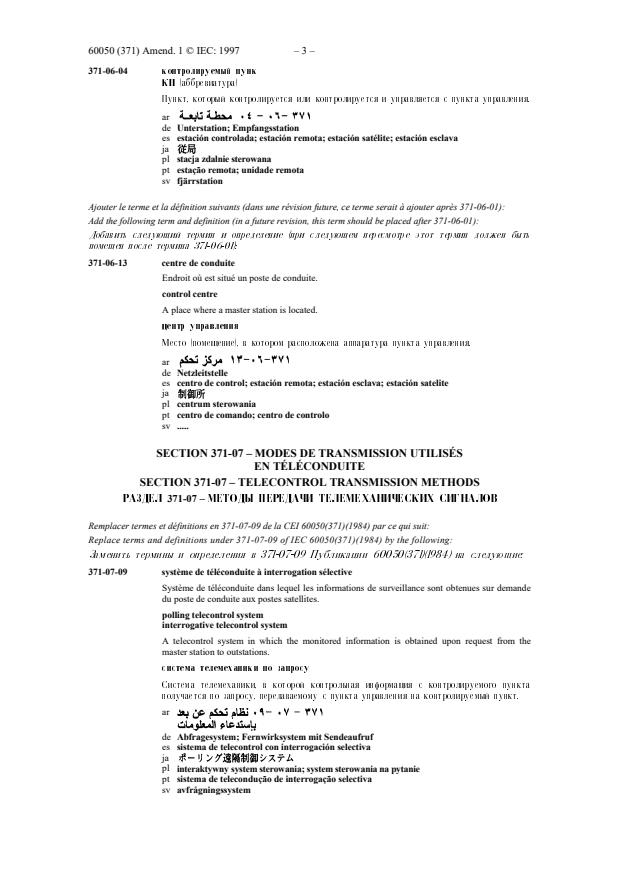 IEC 60050-371:1984/AMD1:1997 - Amendment 1 - International Electrotechnical Vocabulary (IEV) - Part 371: Telecontrol