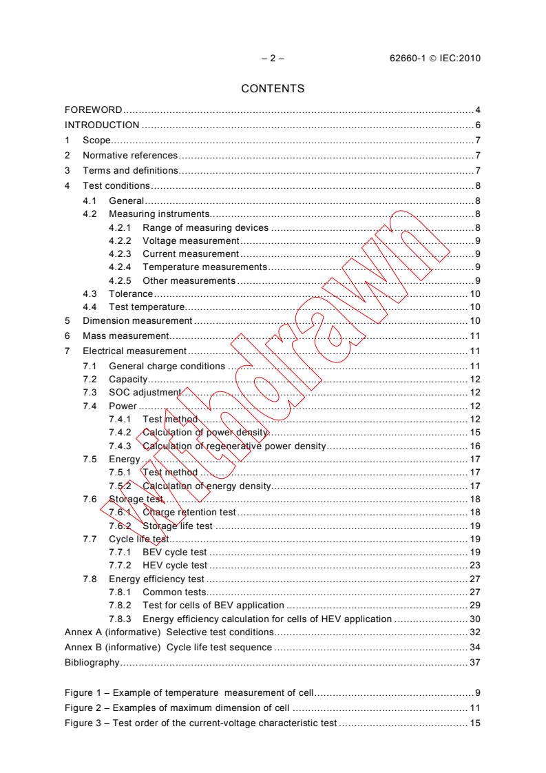 IEC 62660-1:2010 is a standard published by the International Electrotechnical Commission (IEC). Its full title is "Secondary lithium-ion cells for the propulsion of electric road vehicles - Part 1: Performance testing". This standard covers: IEC 62660-1:2010 specifies performance and life testing of secondary lithium-ion cells used for propulsion of electric vehicles including battery electric vehicles (BEV) and hybrid electric vehicles (HEV).