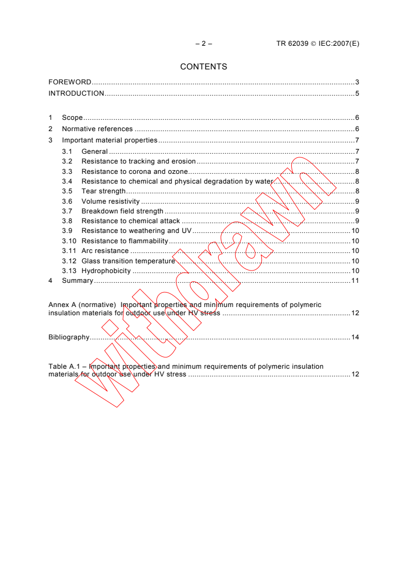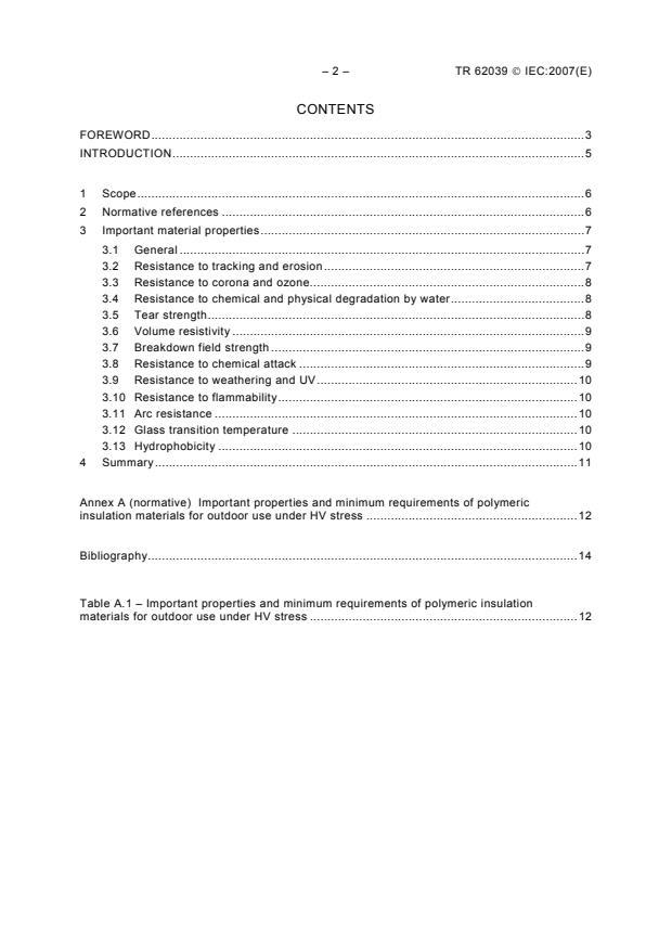 IEC TR 62039:2007 is a technical report published by the International Electrotechnical Commission (IEC). Its full title is "Selection guide for polymeric materials for outdoor use under HV stress". This standard covers: Presents the important material properties for polymeric materials used in outdoor insulation and, where applicable, lists the standardised test methods including the minimum requirements. If no standardised tests are available, then test methods reported in literature are summarised. This report is valid for insulating materials used in outdoor high voltage electrical applications with a system voltage greater than 1000 V a.c. having polymeric insulation including also such applications where the housing is an integral part of the devices e.g. in surge arrestors and cable terminations. The scope of this report is limited to the materials only. The performance of insulators in service depends on several factors such as the type of material, the design, environmental conditions etc. Consequently, the choice of materials that fulfil the requirements listed below is a necessary condition but does not guarantee satisfactory performance when used in outdoor insulation