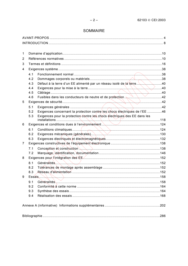 sapplique à lutilisation déquipements électroniques (EE) dans les installations de puissance où un niveau technique uniforme est nécessaire en ce qui concerne la sécurité et la fiabilité. sapplique également aux EE qui ne sont pas couverts par une norme de produit spécifique. spécifie les exigences minimales de conception, de fabrication, de protection contre les chocs électriques, dessais et d'intégration des EE raccordés à une source dalimentation secteur basse tension (non supérieure à 1 000 V c.a. ou à 1 500 V c.c.), dans des systèmes comprenant de la puissance.
