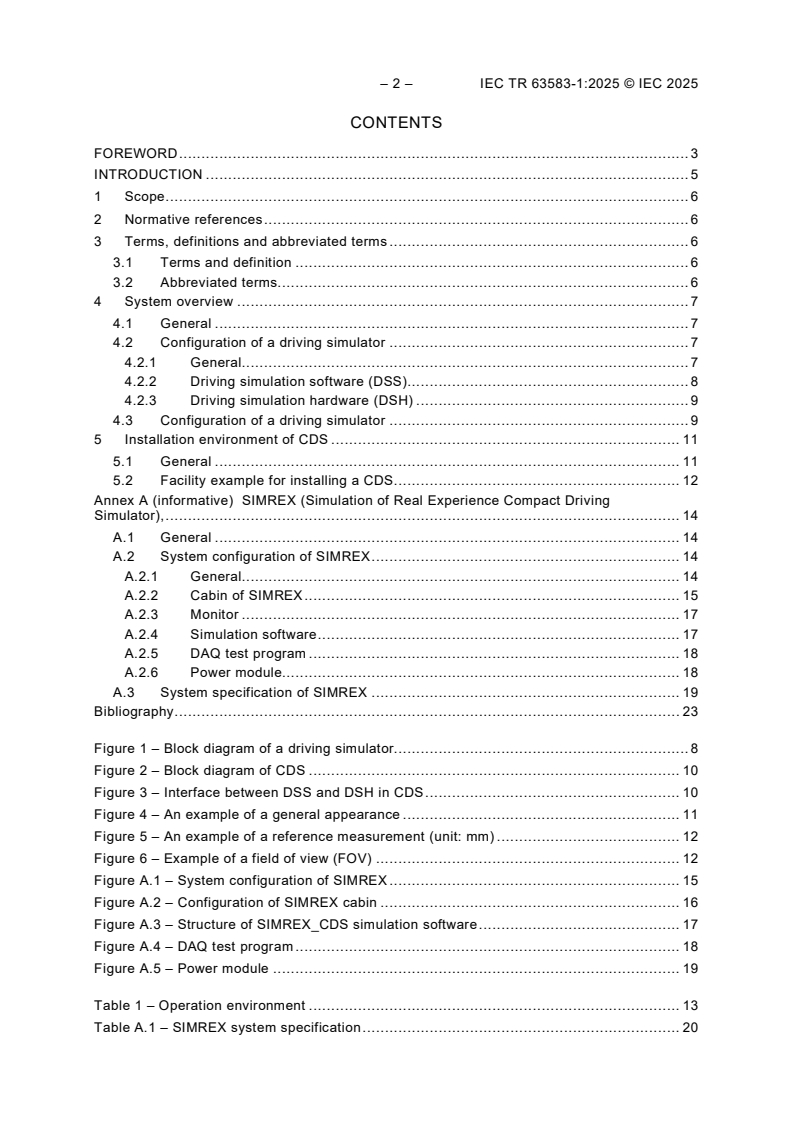 IEC TR 63583-1:2025, which is a technical report, specifies the system overview of the compact driving simulator (CDS), which is a virtual education and training system and a compact version of a driving simulator.
