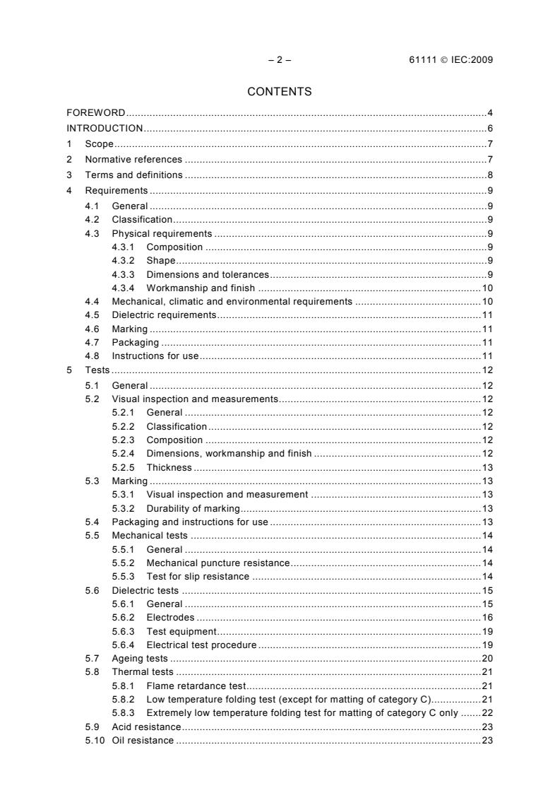 IEC 61111:2009 is applicable to electrical insulating matting made of elastomer for use as a floor covering for the electrical protection of workers on electrical installations. This second edition cancels and replaces the first edition, published in 1992, and its Amendment 1 (2002). This edition constitutes a technical revision. It includes the following significant technical changes with regard to the previous edition: