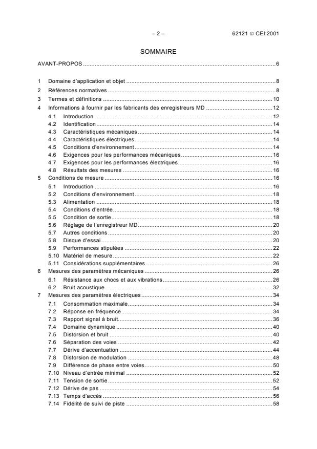 The IEC 62121:2001 standard specifies the methods of measurement for MiniDisc (MD) recorders and players compliant with IEC 61909. Developed by the International Electrotechnical Commission (IEC), this international standard establishes uniform procedures for assessing the performance of MiniDisc recording and reproducing devices. It defines key mechanical and electrical characteristics that influence device functionality, sets measurement conditions, and standardizes result presentation.