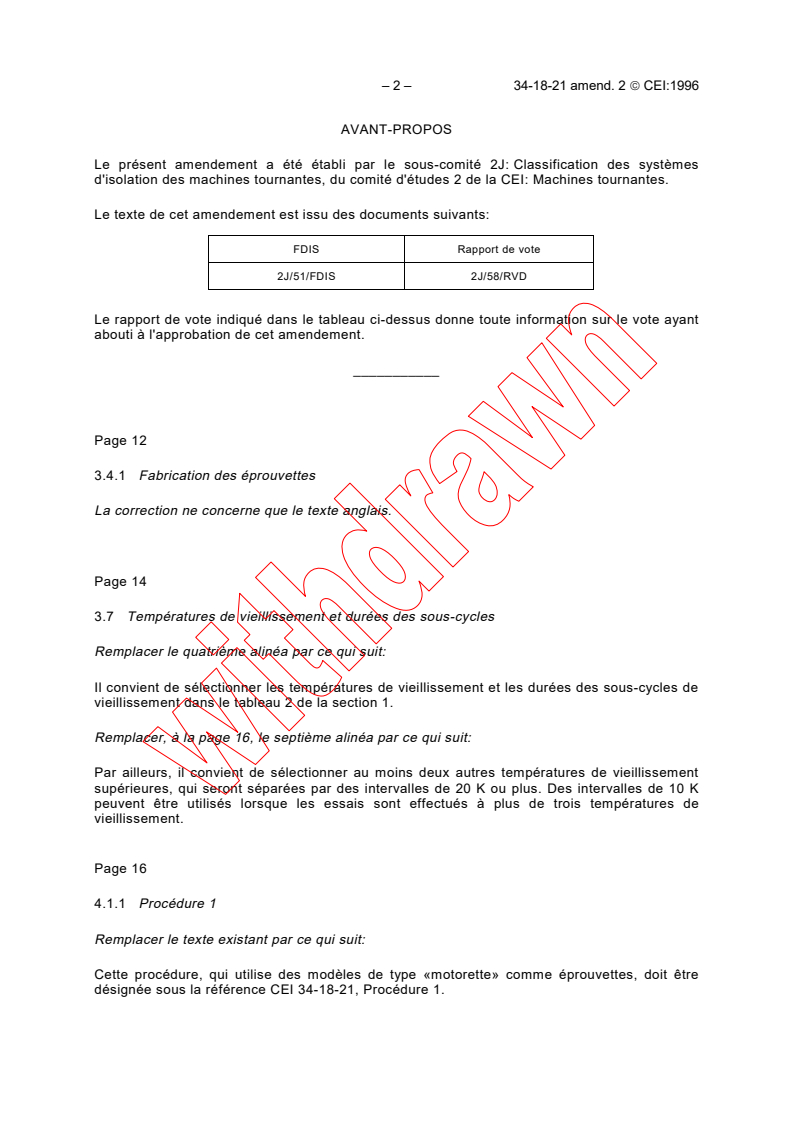 IEC 60034-18-21:1992/AMD2:1996 - Amendment 2 - Rotating electrical machines - Part 18: Functional evaluation of insulation systems - Section 21: Test procedures for wire-wound windings - Thermal evaluation and classification Released:11/28/1996