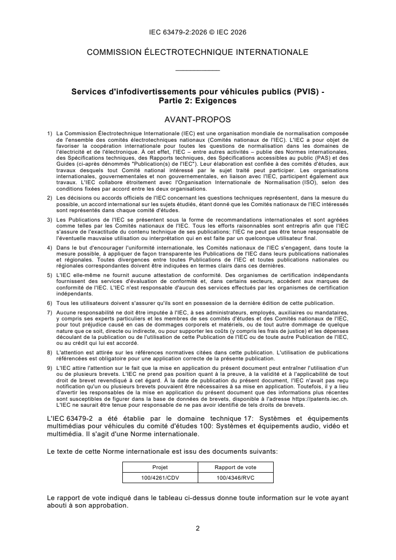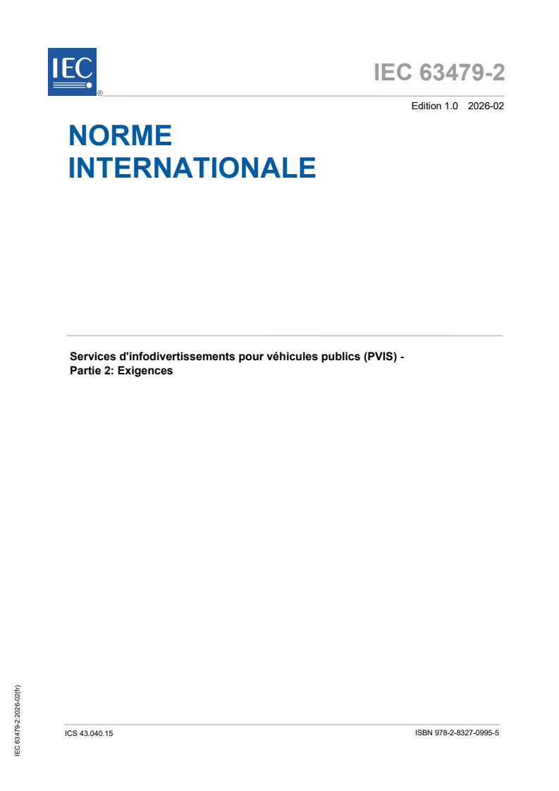 IEC 63479-2:2026 - Services d'infodivertissements pour véhicules publics (PVIS) - Partie 2: Exigences