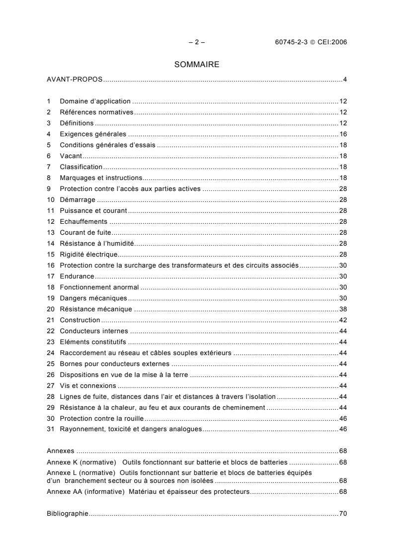 Additional normative annexes give detailed requirements on battery tools and associated packs, as well as material specifications for safety guards.
